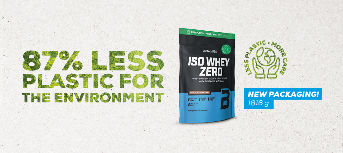 Premium quality sugar-free*, lactose-free** and gluten-free whey protein isolate with Native Whey Isolate basic ingredient, added BCAA and glutamine amino acids, in a packaging made with less plastic.
